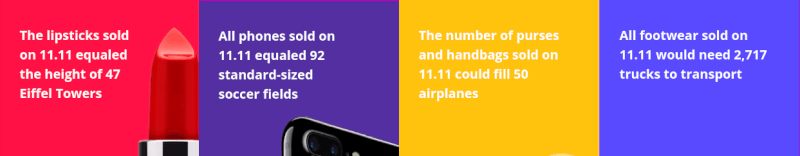 Also, the footwear sold on 11.11 would need 2,717 trucks to transport, which is crazy. You can find more about this in AliExpresss 11.11 Global Shopping Day Page.