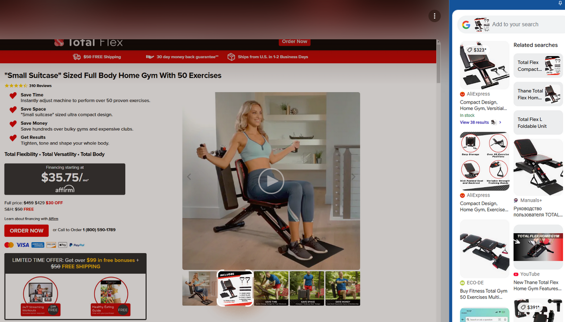 2. Next, a side panel will open, displaying various results. Pay close attention here, as many sites use illustrative images to promote products that might differ from your search. However, you’ll soon find your product on Walmart, AliExpress, Alibaba, or other well-known suppliers.