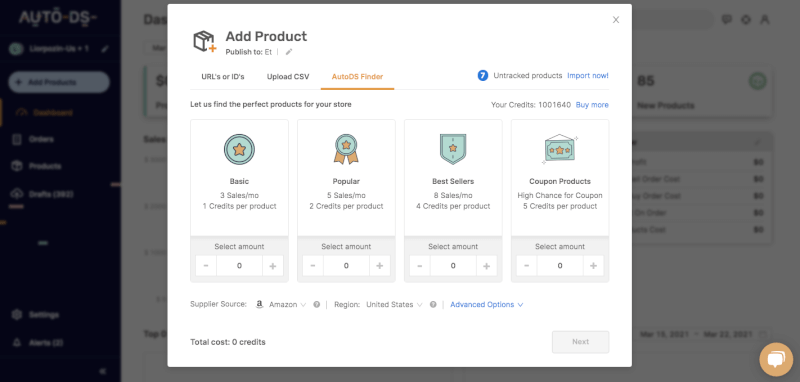 Choose which product selling category fits you the best – from items which sold 3, 5, or 8 times within the last month, and also products with a high chance of having coupons, which means more profit.