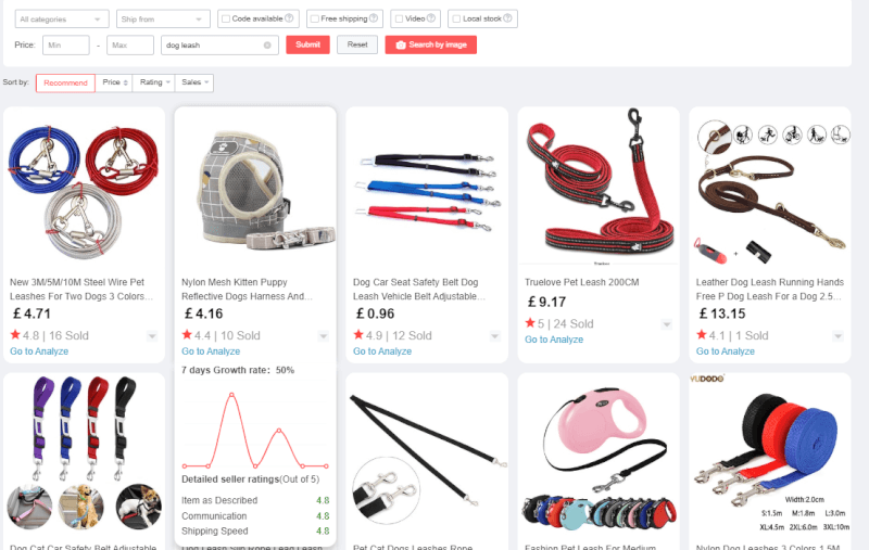 Interestingly, once we search for a specific product and we get the search results, we can hover over any listing to see the growth rate and seller ratings.