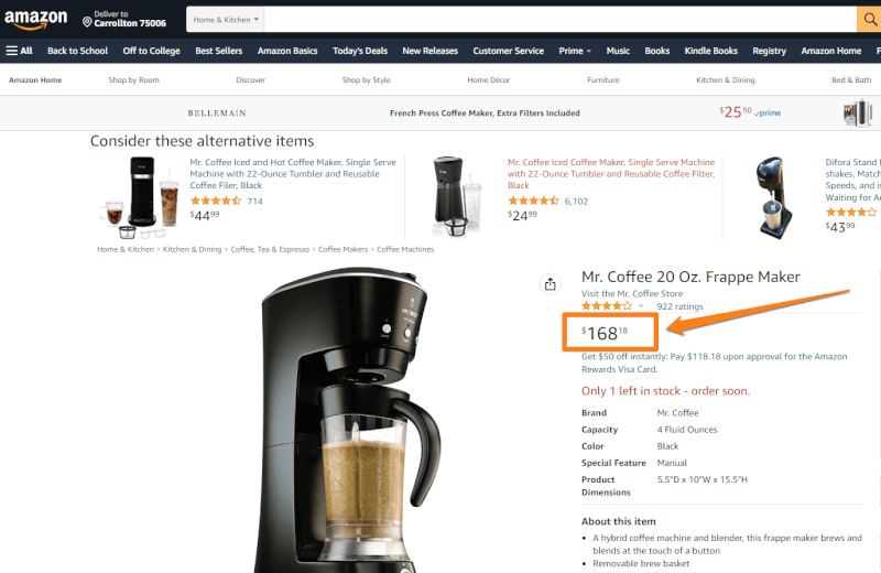 As we can see in the above image, the coffee maker is currently available on Amazon for $168.18. Since the product has a 4.2/5 star rating and plenty of positive customer feedback, we can rest assured that the Amazon seller is a reliable supplier to source from.
