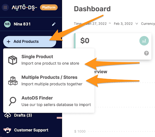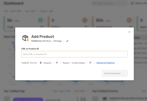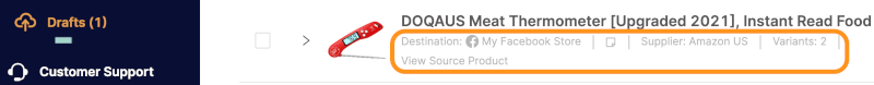 From here, simply paste your product’s URL or product ID from your supplier site, and add the product to ‘Drafts’.