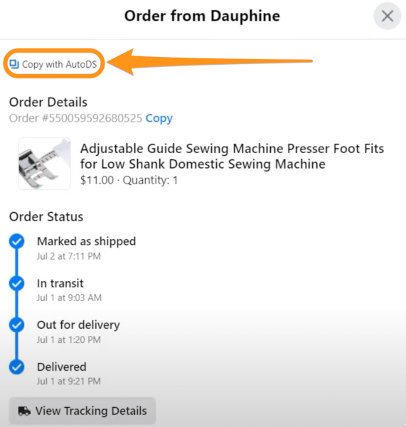 There is, however, one way to save lots of time processing orders. Using the AutoDS Chrome extension, we can copy customer addresses from Facebook and paste them in one click into a supplier website.