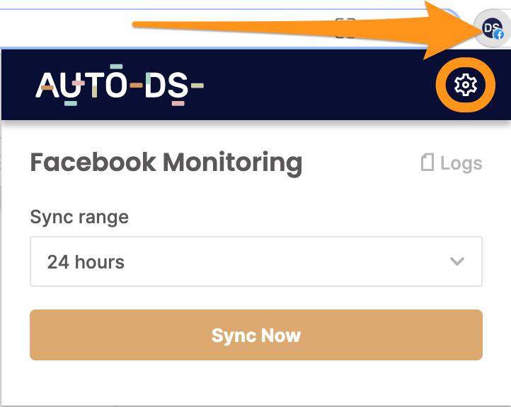 After integrating our stores with AutoDS, we can sync existing products from the extension. To do so, first, click on the Chrome Extension and select your FBMP store. Then, choose Sync Range. Here, we can choose to sync products from existing listings from the last 24 hours, 7 days, or all products.