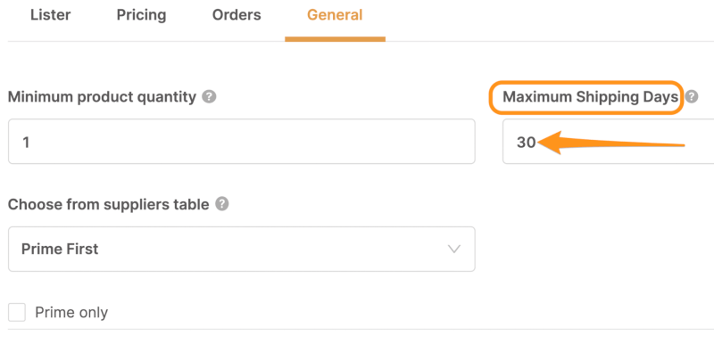 To prevent products with slower shipping times from being listed, make sure to set the correct value under ‘Maximum Shipping Days’ in your AutoDS settings.