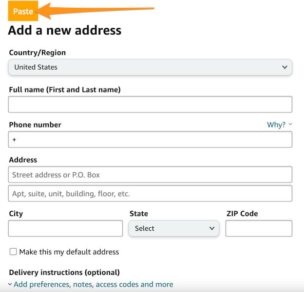 When you arrive at the address page, simply click the orange ‘Paste’ button. The AutoDS extension automatically fills in the customer’s information.