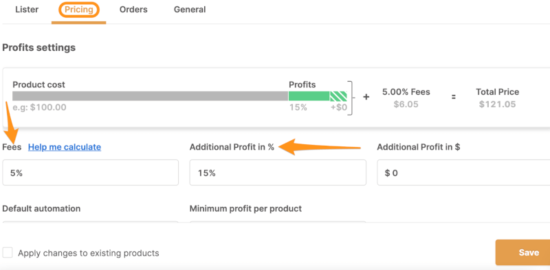 Of course, we can always opt to change these settings for each supplier. For example, we can choose to make a %20 profit instead of %15 when uploading from Amazon.