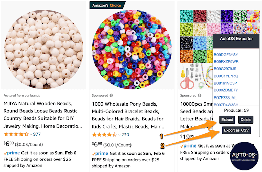 Look up a niche, a subcategory, or any product you’d like to add. Once you land on a search page with multiple products you’d like to add, click on the AutoDS logo on the bottom right to activate the extension.
