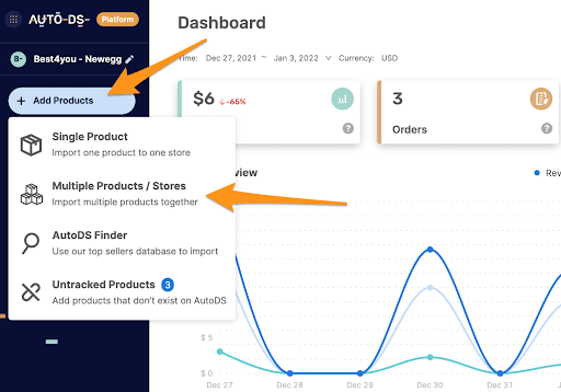 Once the file has downloaded, head over to your AutoDS account. Select ‘Add Products’ and then ‘Multiple Products’.