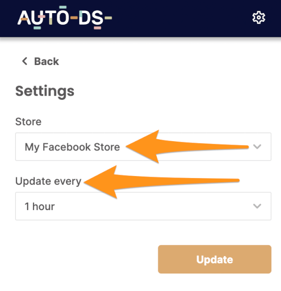 To use this feature, go to the Facebook Dropshipping Helper, and select a ‘Sync range.’ For example, we may want our stores to sync every 24 hours.