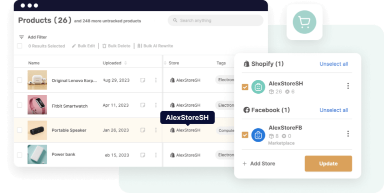 Monitor multiple stores at a glance on one platform. Manage performance, products, and real-time performance effortlessly.