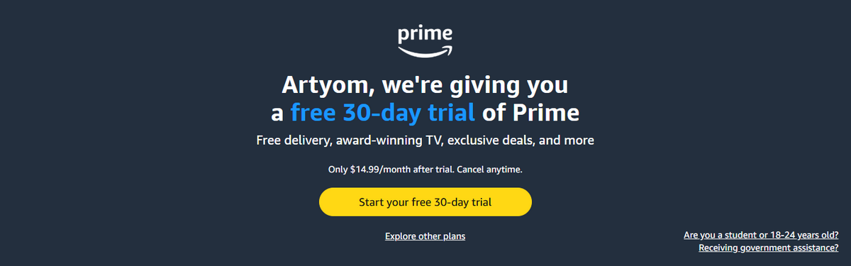 To ensure fast and reliable shipping for your customers, sign up for Amazon Prime. Head to your account settings, click Prime Membership, and register for a free trial. After the trial, you can choose a monthly or annual subscription.