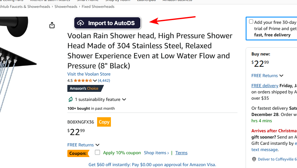 Use this feature to import products directly from Amazon with a single click. Once installed, the AutoDS Chrome Extension will enable an “Import to AutoDS” button on the Amazon product page, simplifying the process.