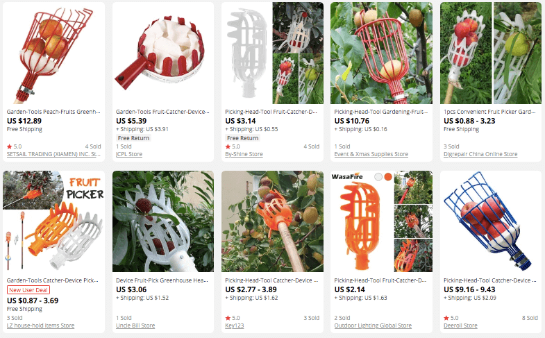 First up, we have the Fruit Catcher. These are a great solution to ladders! Instead of carrying around a much bigger and heavier ladder, you have this device to save yourself the hassle.