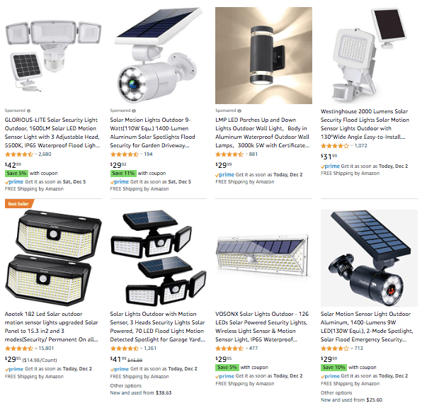 Next, we have Solar Powered Lights. Every garden needs lighting, and these are a perfect choice. We love anything, solar-powered.
