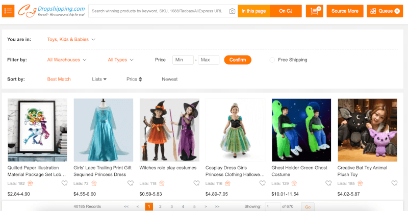 Next up on our list, we have CJDropshipping. Like AliExpress, it is a dropshipping supplier with thousands of baby product suppliers from China.
