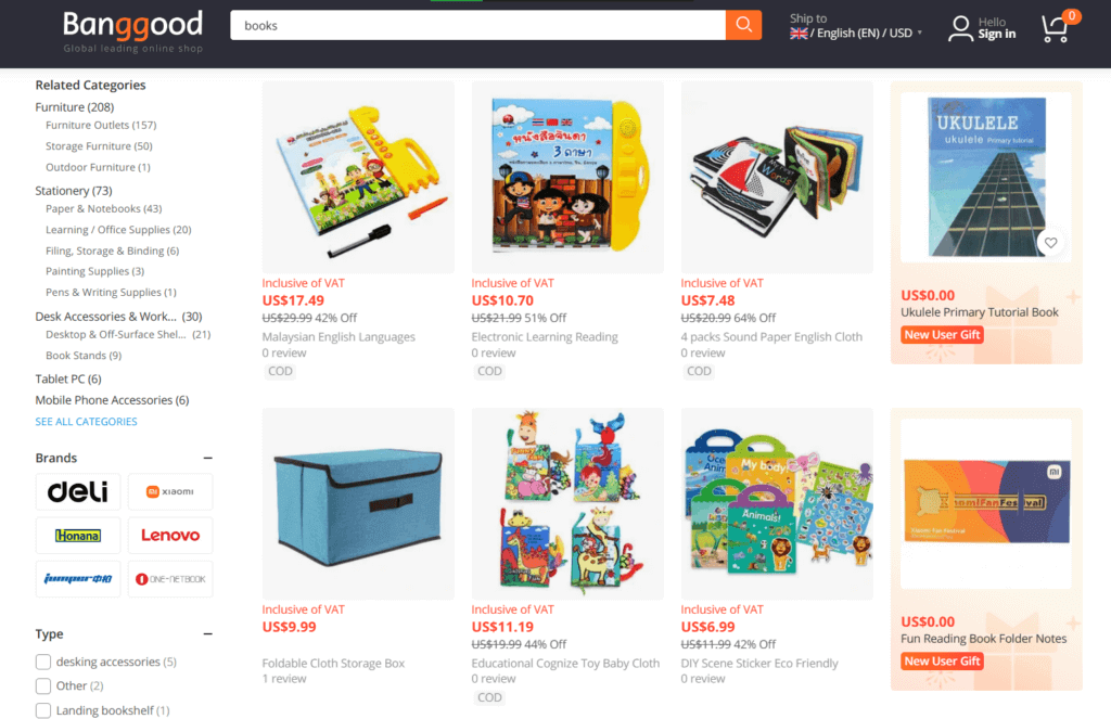 Banggood offers low prices for its products, such as books. As a result, we can sell these items at reasonable costs and achieve increased profits.