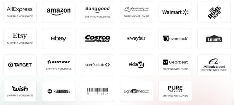 Over 20 suppliers to choose from! Import hot items from Amazon (US, UK, DE, IT, FR), AliExpress, Walmart, HomeDepot, Costway (US, UK, DE, IT, FR), ChinaBrands (US, UK, DE, IT, FR), Banggood, and many more.