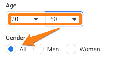 What’s more, we need to also select the gender target. Depending on what we are selling, we can set a more specific gender target. Some products might be more appealing to one gender over the other. However, in all other cases, we can just stick with the ‘all’ setting in the gender section.