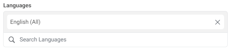 Afterward, we will scroll down and click the ‘Edit’ button in the ‘Language’ section. For example, if we want to target English speakers we can choose the ‘English all’ option to include both UK and US varieties. Notably, we can also choose multiple languages to target.