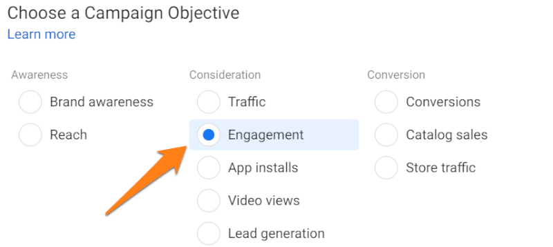 Some of us already have a post where we want to place the ad. Such is the case if we’ve already launched an ad and want to change the goal.