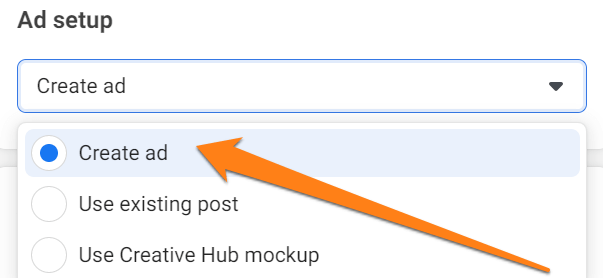However, since we’re demonstrating how to create a first Engagement ad, we’ll create a new post. On the same page, scroll down until you get to ‘Ad Setup’, and select ‘Create Ad.’