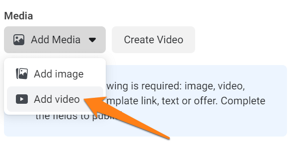 Finally, we’ve made it to the most interesting and relevant part of the process where we decide how the ad looks and what it consists of. Keep scrolling down to the ‘Ad Creative’ section and start with ‘Media’. Next, click on ‘Add Media’, then ‘Add Video’. This opens a new window where we choose and upload a product video.