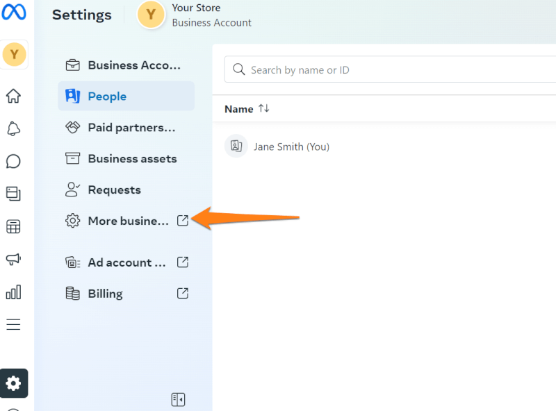 Once we’ve opened the Settings, next to the menu we’ll see an additional menu. Here we will find the ‘More Business Settings’ button and click on that. Then, this will take us to a new page.