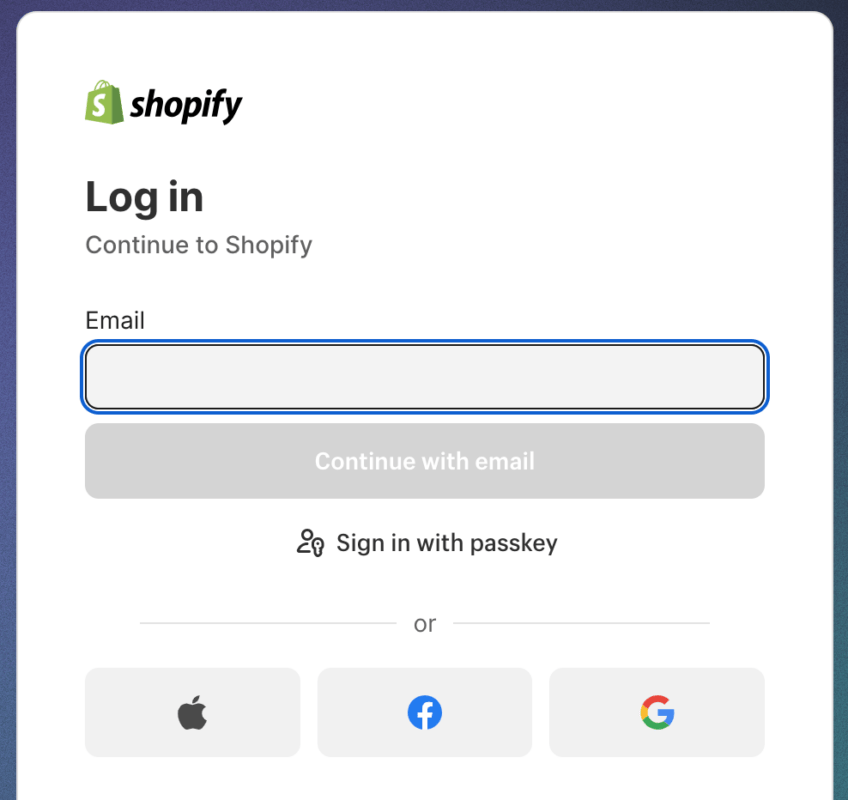 - Let’s use your email. Enter your email address to sign up for your Shopify account – this will be your username for later login.