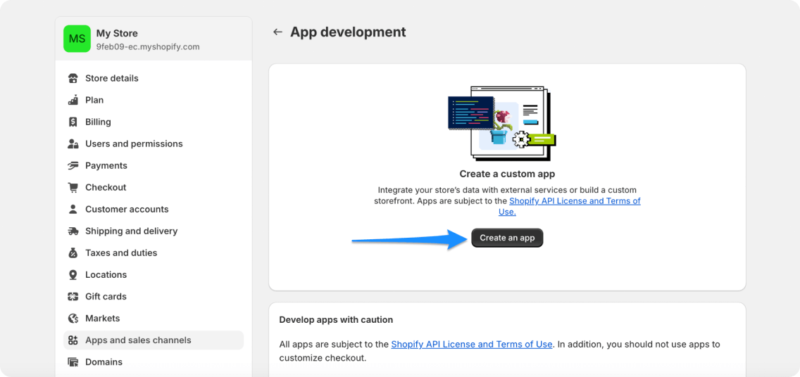 4. Create a New BFF for Your Store (BYS App). Look for a button that says “Create an app” and click on it. Then, give your new app a friendly name.