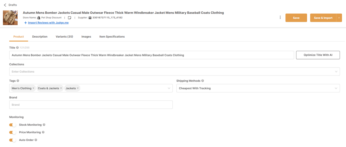 When the optimization process is done, we can click ‘Save’ to apply the changes to the product details. If the product is all set, click ‘Save and Import’ to transfer the product from the ‘Drafts’ section to the ‘Products’ page.