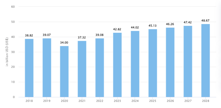 The value of the baby clothes market was estimated to be approximately 48.67 billion U.S. dollars worldwide by 2028. This is an increase of over 10 billion U.S. dollars over the 10-year forecast period.