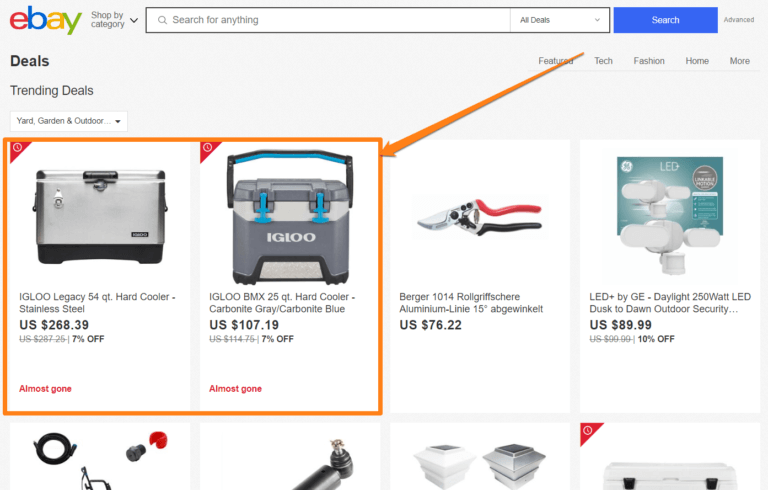 Besides finding products on eBay through the trending section, we can also manually search for profitable products. First, head over to eBay and search for desired products. For example, let’s search for Patio Umbrellas from the Home and Garden niche.