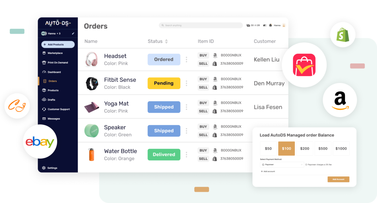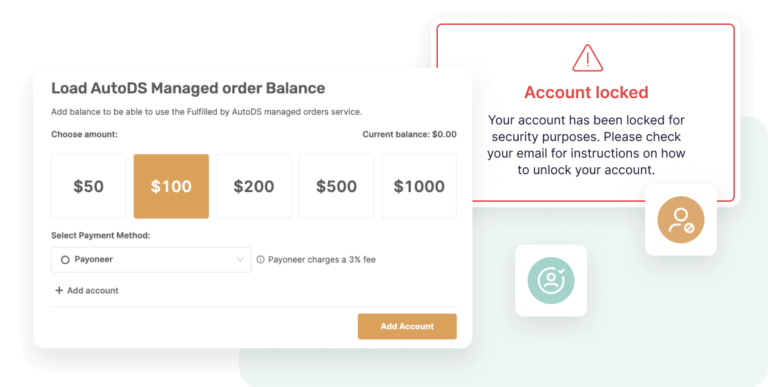 No more buyer account issues or order cancellations—AutoDS handles all orders for you. Simply load your balance, and we'll take care of everything.