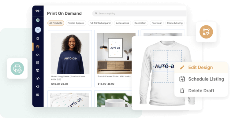 Create and sell a wide range of custom-designed products directly through AutoDS. Our product range includes apparel, accessories, decorations, footwear, and much more.
